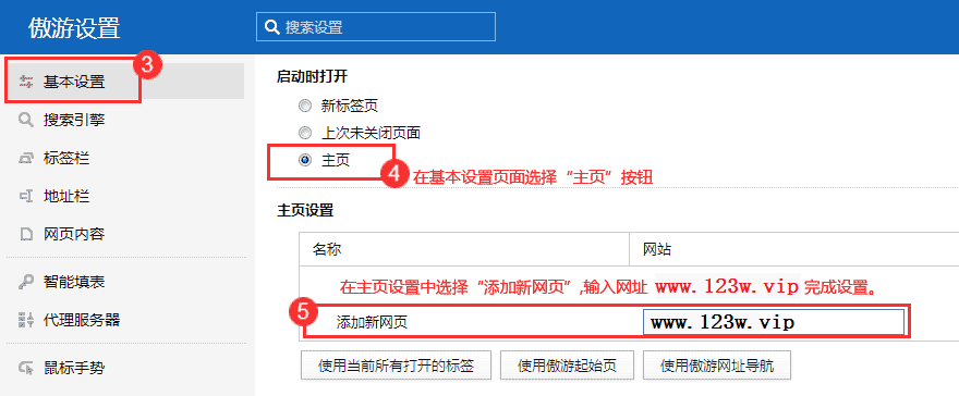 遨游浏览器设置首页方法